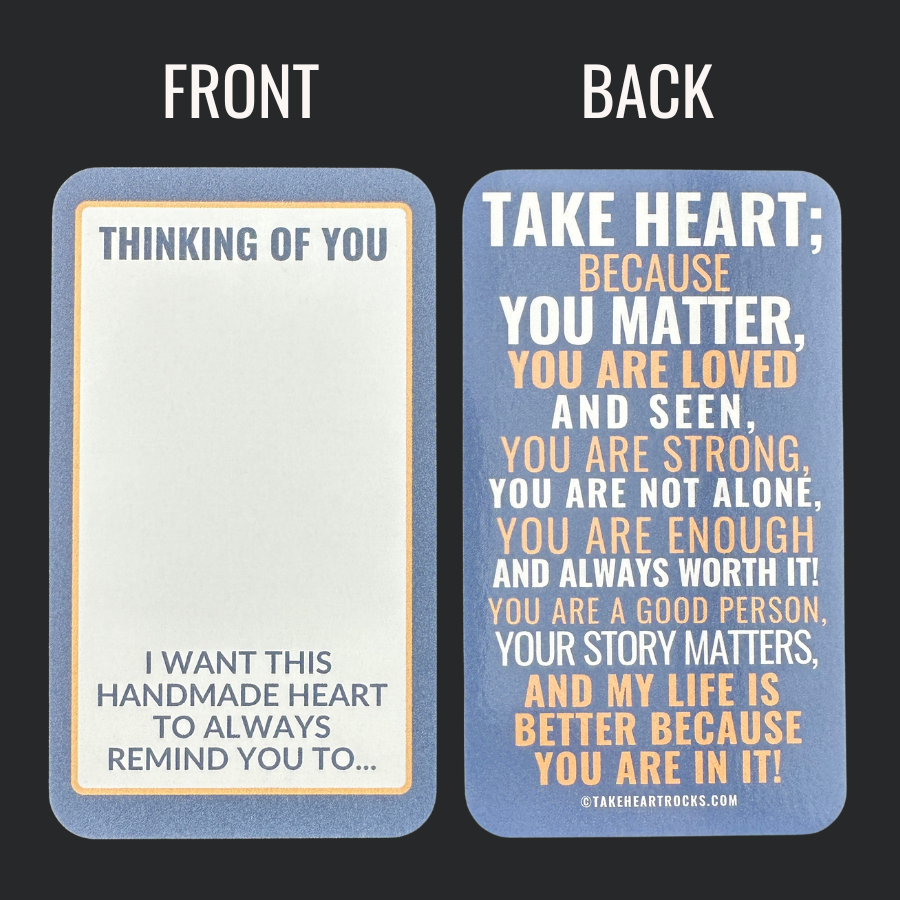 Oh, and I gift a free heart with every order. I hope that every time you see it, it reminds you that the world is a better place because you are in it.