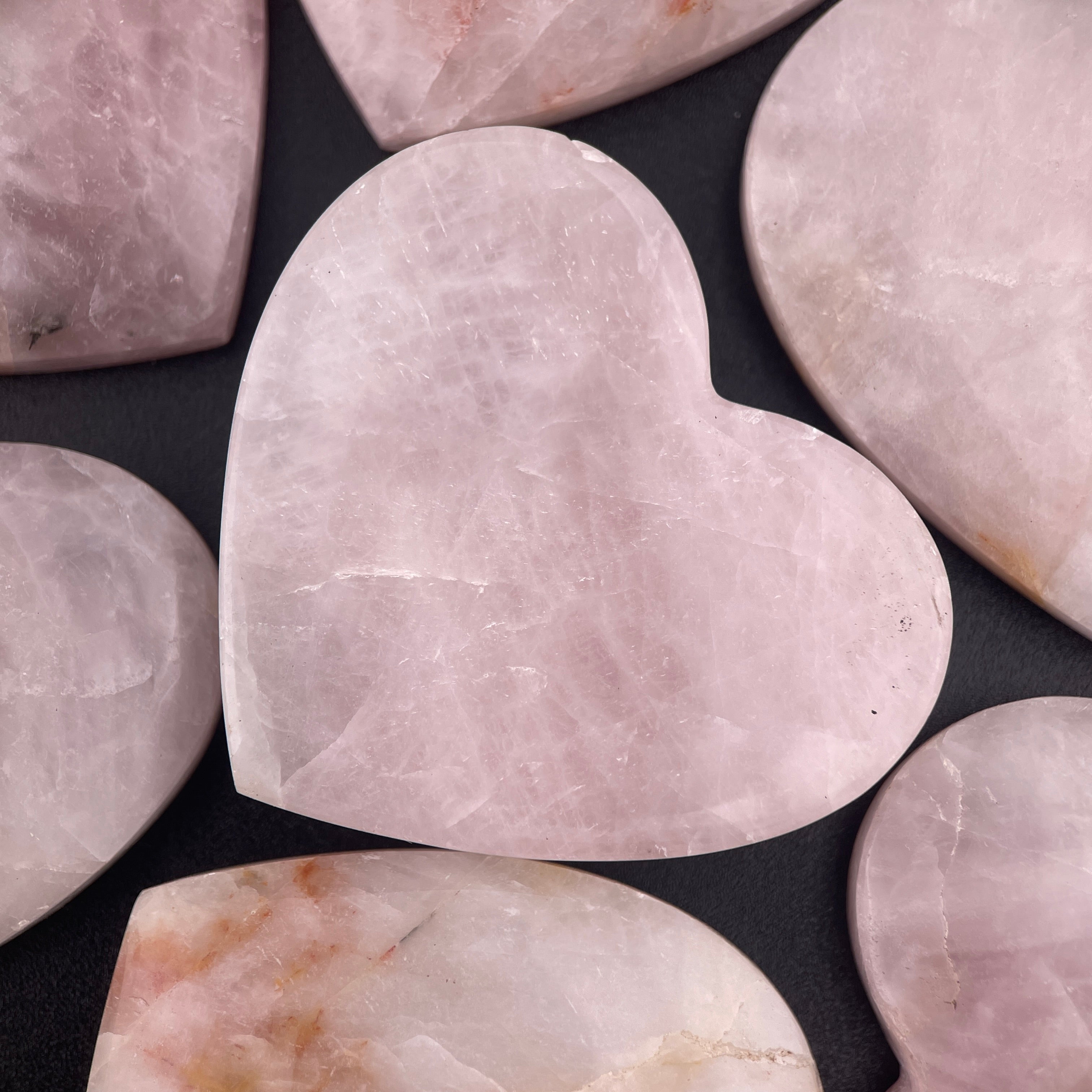 Each heart is natural Rose Quartz, cut from a single boulder!