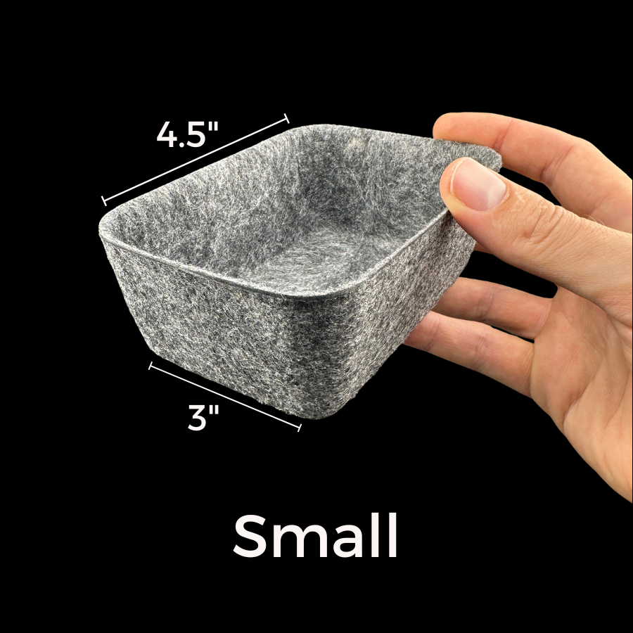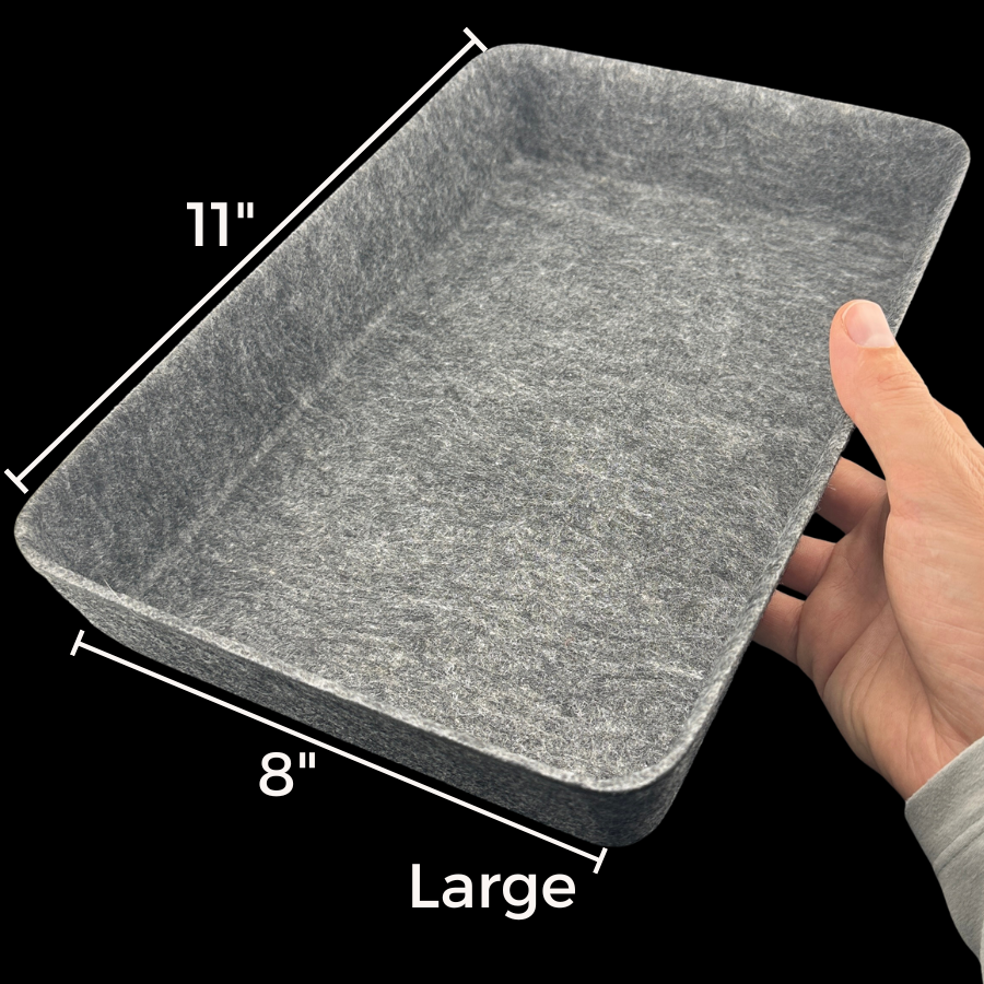These 2-inch tall Felt Trays feature a compact footprint while protecting, highlighting, and holding 30, 100, or 300+ Heart Rocks. Additionally, they look great on any table or countertop and never require dusting or cleaning.